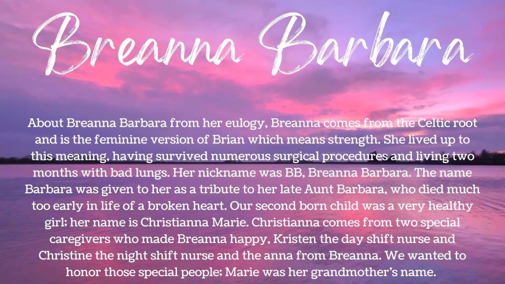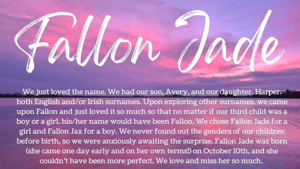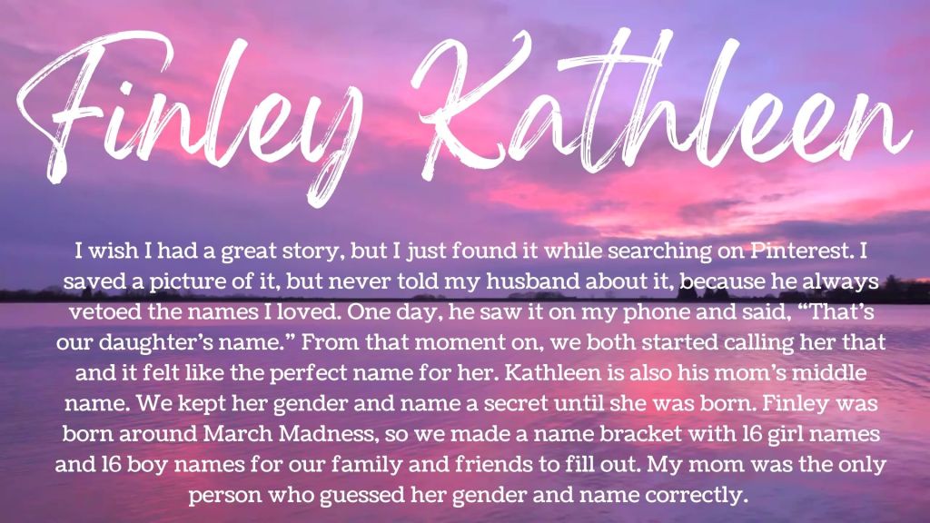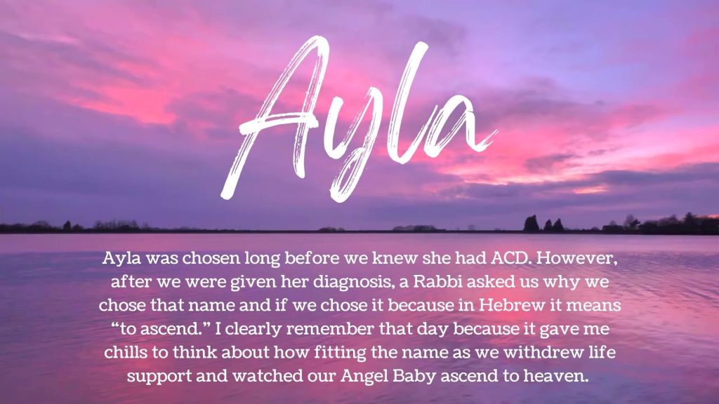 Bereaved parents often have limited opportunities to hear or say their beloved child’s name, with even fewer chances to talk about its meaning. We wanted to learn those stories. Please watch the video above or view the individual name cards below. It is our hope that sharing the story of your loved one’s name along with reading the names and stories of other children affected by ACDMPV will provide a sense of comfort and community within our ACDA families. A suggested idea is to read the final compilation of stories while lighting your candle on October 15 during the ACDA Wave of Light.