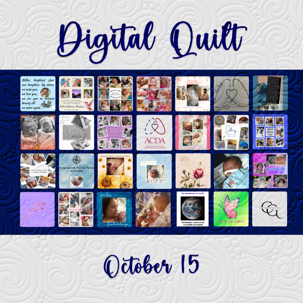 In October 2024, the ACDA created a digital quilt project for Pregnancy and Infant Loss Awareness Month, with each square representing a child affected by ACDMPV. Please explore each individual digital square in detail below.