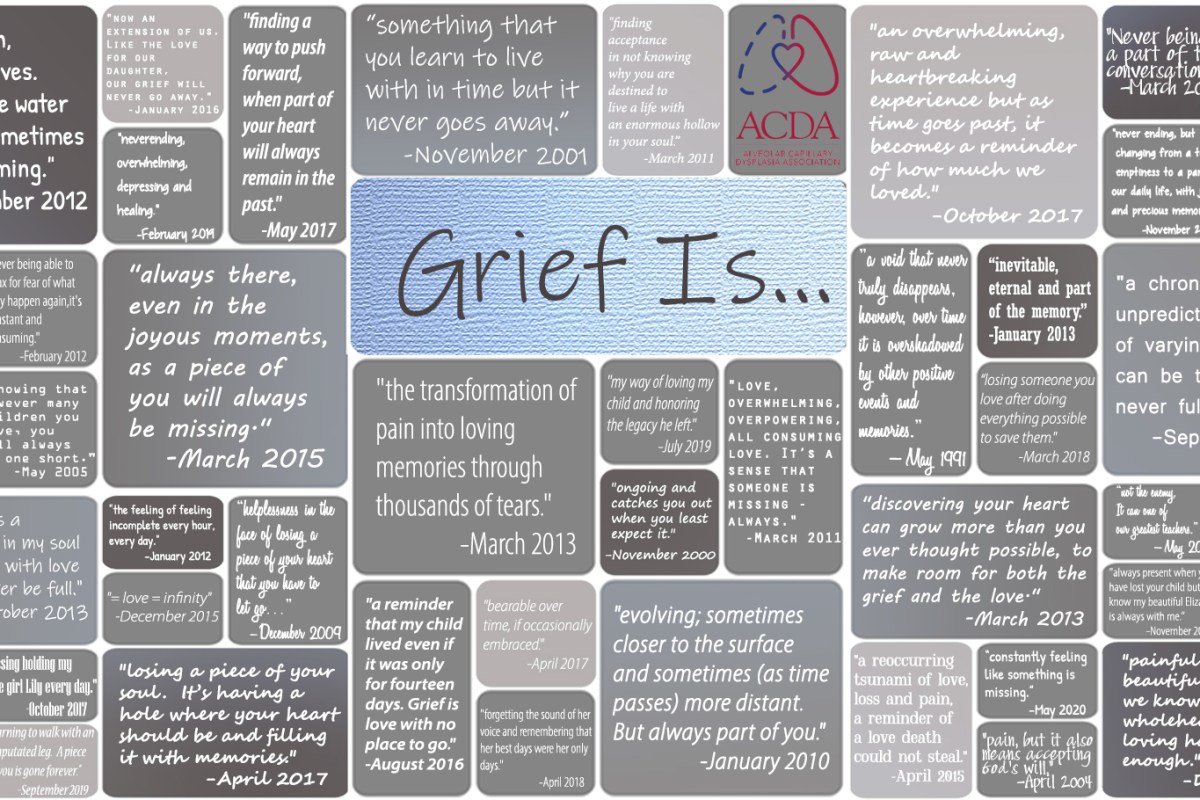 In October 2020, the ACDA created a written word project describing grief in the words of our ACDA registered families. Click to view.